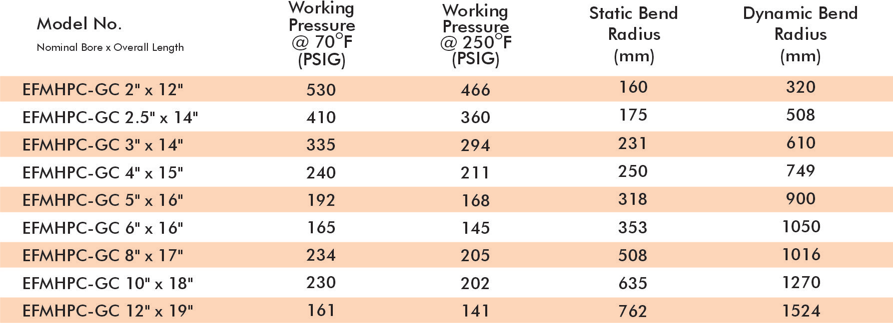 | NB/NPS | Length | Pressure Rating Single Braiding | Test Pressure Single Braiding | Pressure Rating Double Braiding | Test Pressure Double Braiding | Tempreture | Minimum Centerline Bend Radius | Lateral Offset | Drawing | |